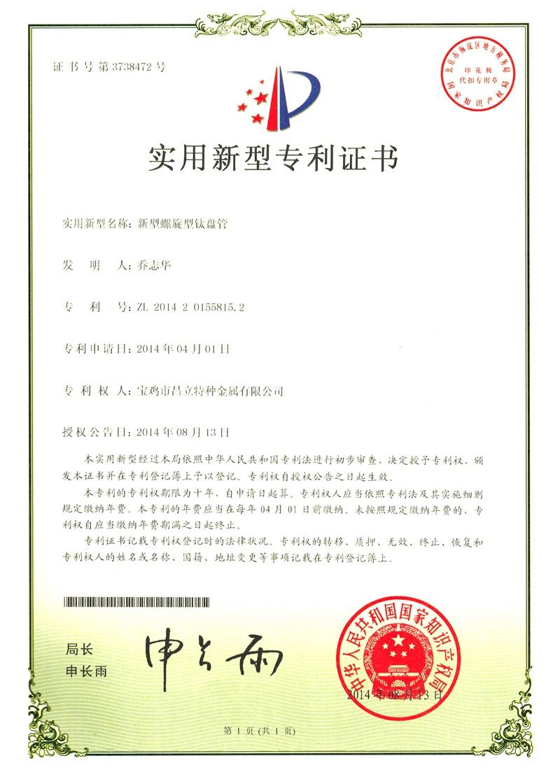 實用新型專利證書